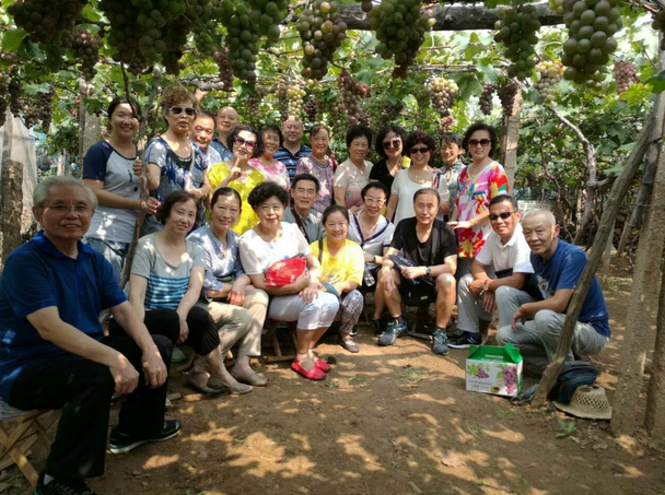 9月14日上午,在我馆办公室工作人员的陪同下,老干部一行30余人乘车来到城阳区惜福镇宫家村,秋日的乡村一片成熟繁荣景象,如同老干部的晚年一般绚丽多彩。葡萄园的葡萄恰已成熟,一串串挂在架子上垂涎欲滴,老干部们在园中采摘、品尝,三三两两合影,谈笑风生。