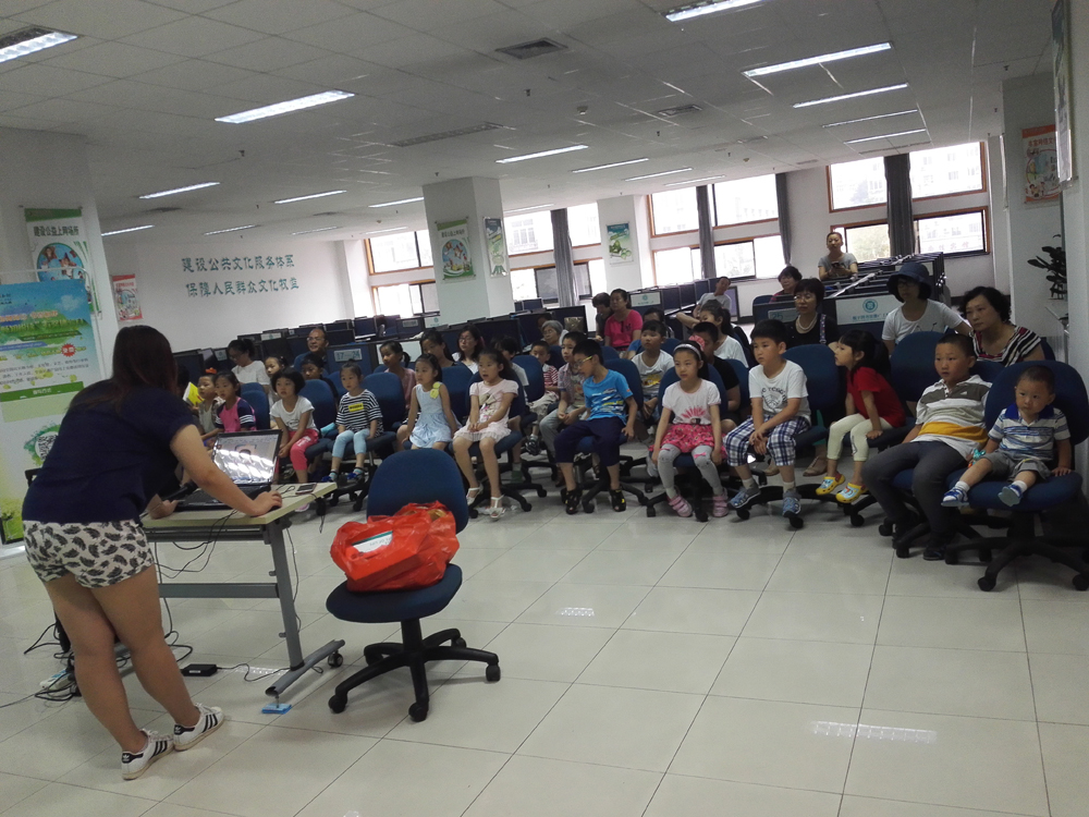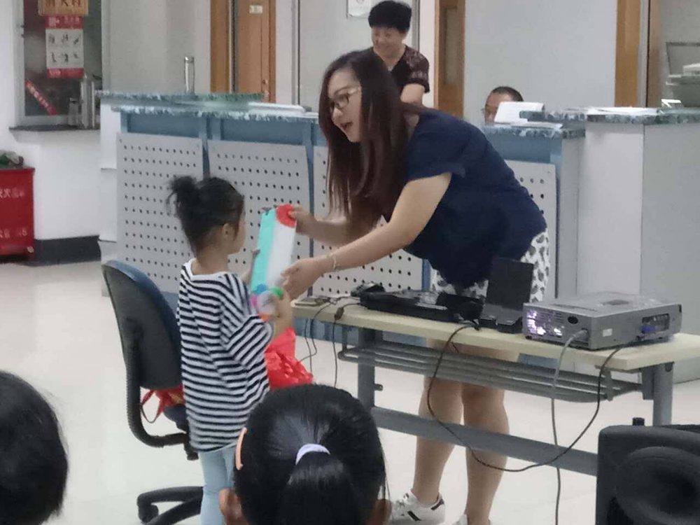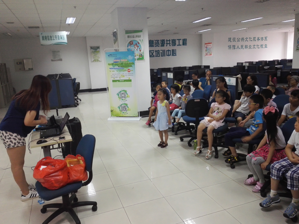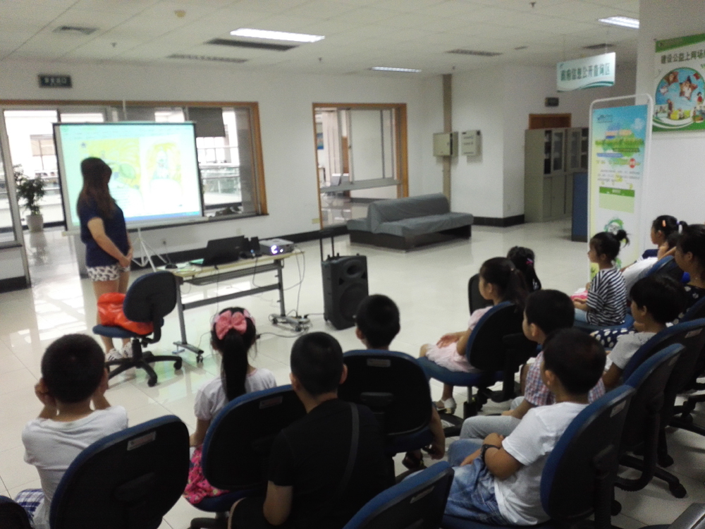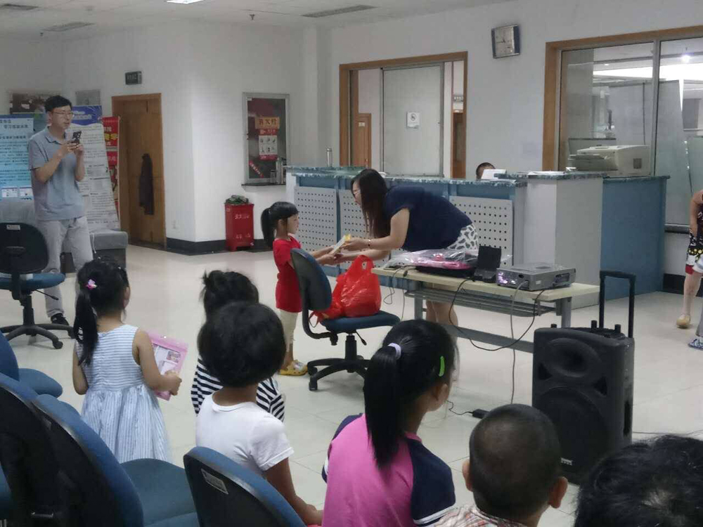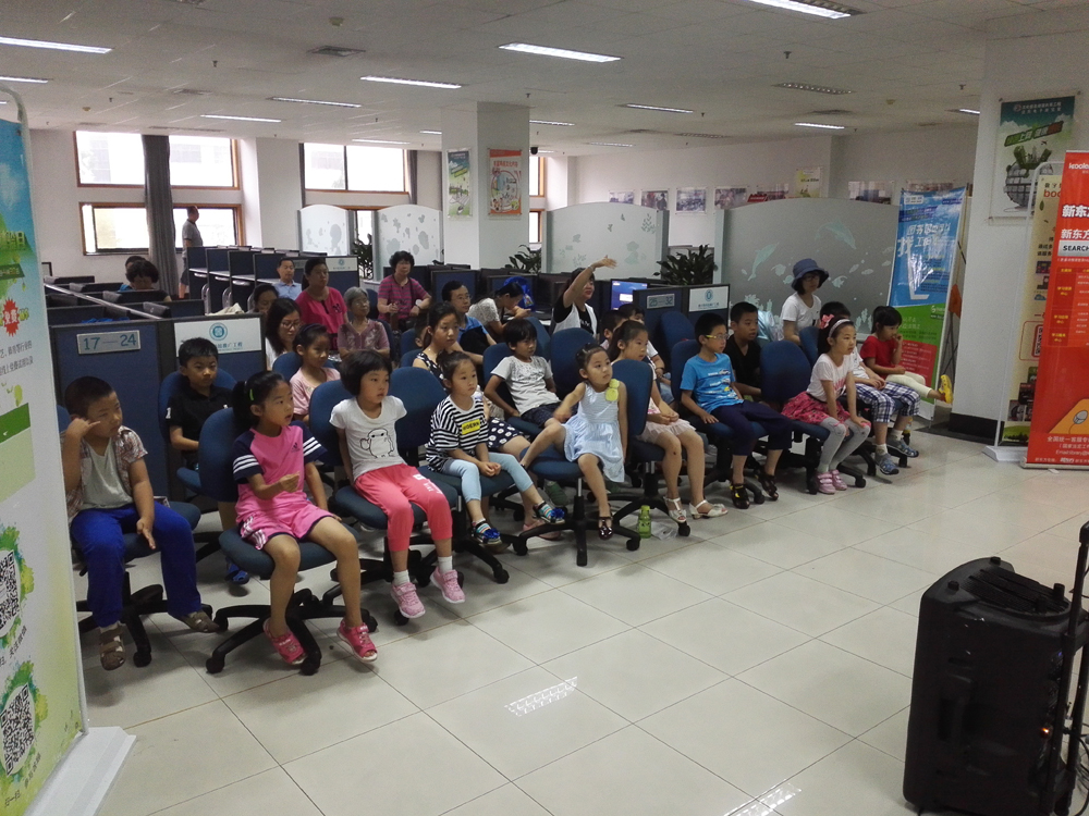 本次活动由网络信息中心的刘英老师主持,新东方多媒体数据库讲师小林主讲,小林老师带领小朋友一起观看了井底之蛙的绘本故事视频,然后教小朋友们学习了十几个英语单词,纠正他们的发音,最后带领小朋友们做拼图数字游戏,活动现场气氛非常热烈,小朋友们也学习的非常认真,小林老师还精心准备了精美小礼品进行现场发放,在场的每一位小朋友都领到了一份可爱的小礼品,表现特别好的小朋友还获得了水杯和书包哦!