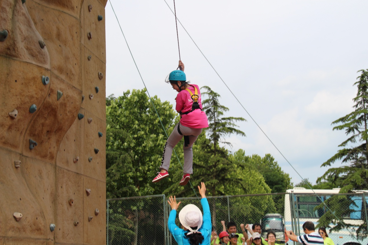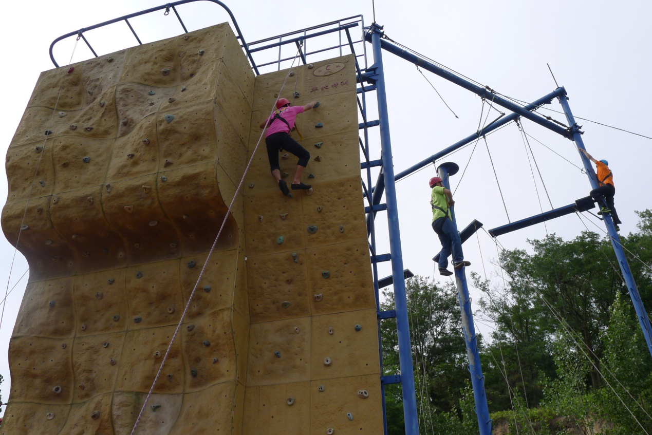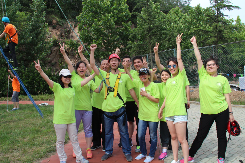 拓展培训过程中,参加训练的人员分为4个小组,在专业教练的指导下,分别进行了地面项目数星星,以及热身操、空中抓杠、攀岩、团队桥、断桥等高空项目的挑战。随着项目的进行,组员们相互关心、激励,团队的凝聚力明显加强。