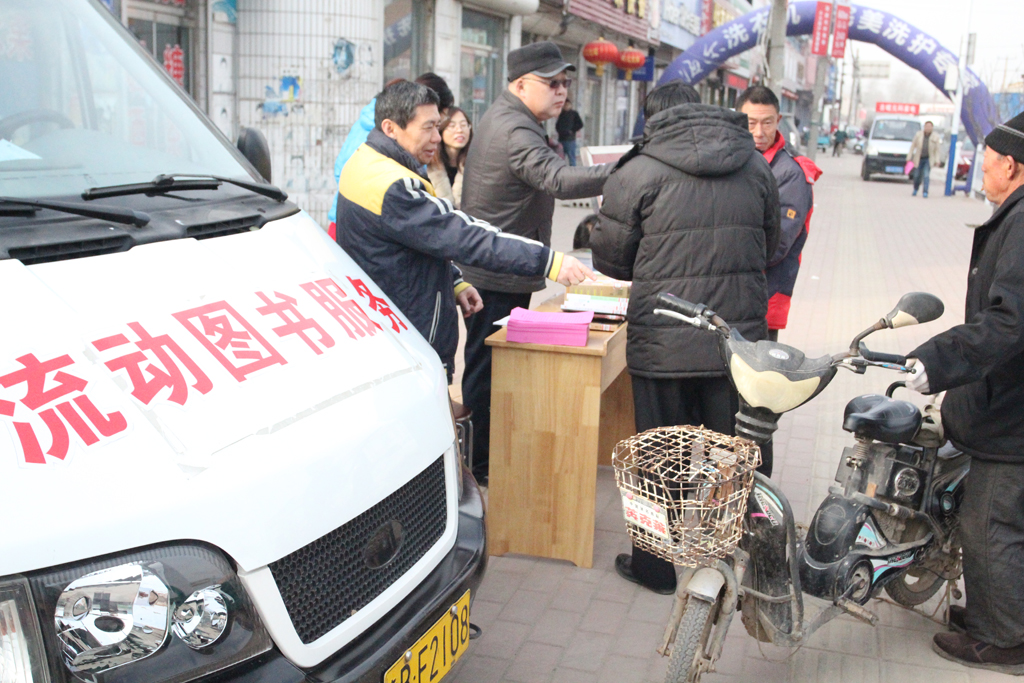 11月16日上午,市图书馆流动服务进基层活动来到了崔家集镇大集上。工作人员将流动服务车上的桌椅、图书、宣传刊板等一一摆好,并通过录音广播向大家介绍平度市图书馆及其服务项目,现场办理借书证,现场开展图书借阅,现场发放《平度市图书馆简介》、《平度市图书馆免费开放项目》等宣传页,并给群众免费发放了部分种植养殖、养生保健等方面的适用图书,活动成效显著。