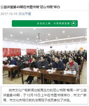 公益讲堂第49期在市图书馆“尼山书院”举办