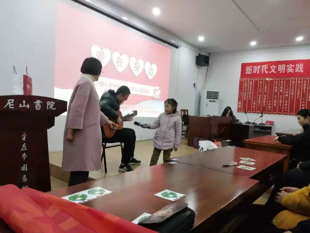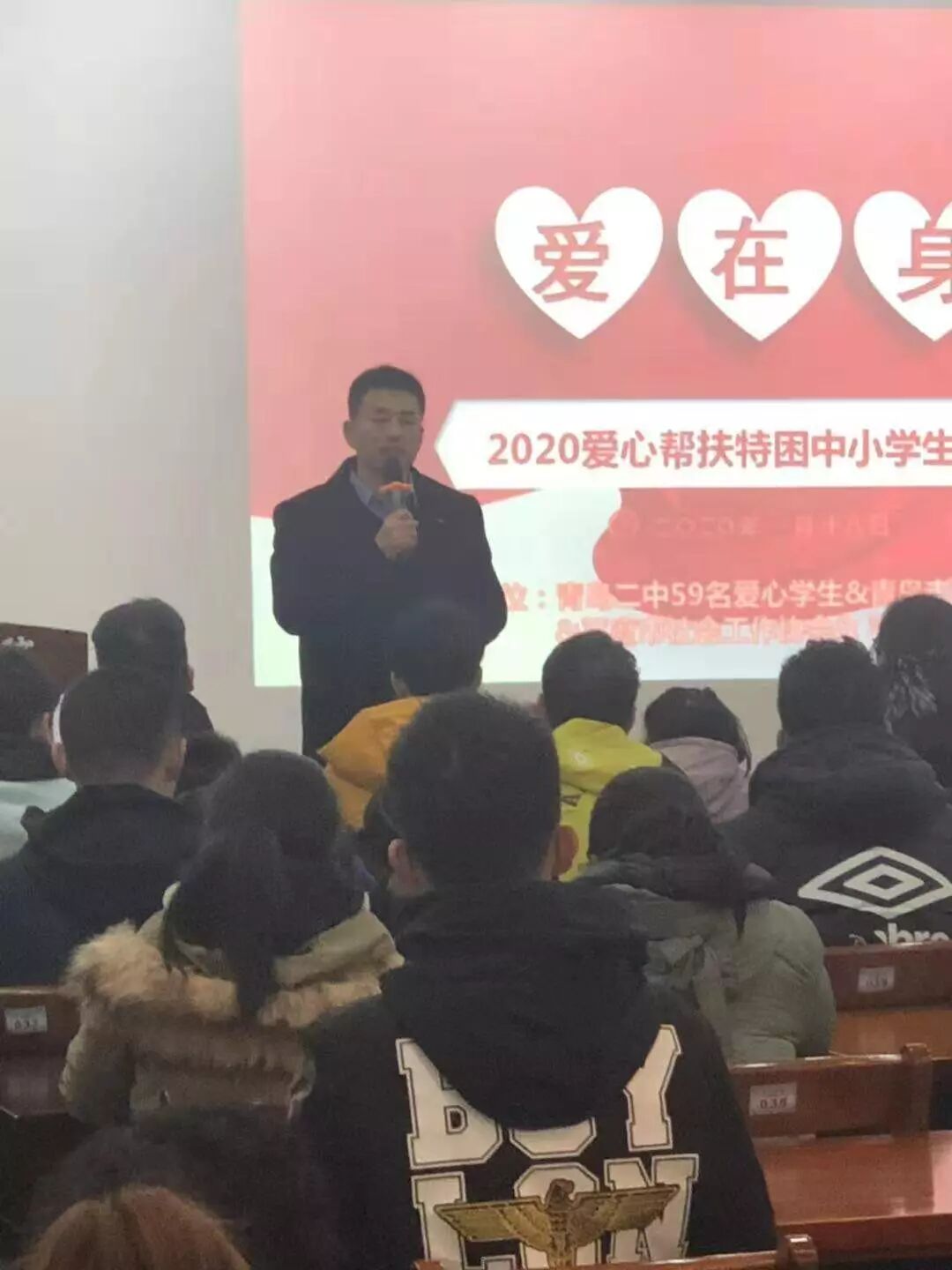 2020年1月18日,由青岛市慈善总会和惠爱心基金 、平度市教体局、平度市关工委、平度市社会工作协会、平度市阳光青少年心理咨询研究所、平度市图书馆、青岛二中59名爱心学生共同组织的“爱在身边——2020爱心帮扶特困中小学生”公益活动在平度市图书馆尼山书院举办。本次活动采取与青岛二中学生“一对一结对”帮扶形式开展,帮扶了平度市68名特困孩子。